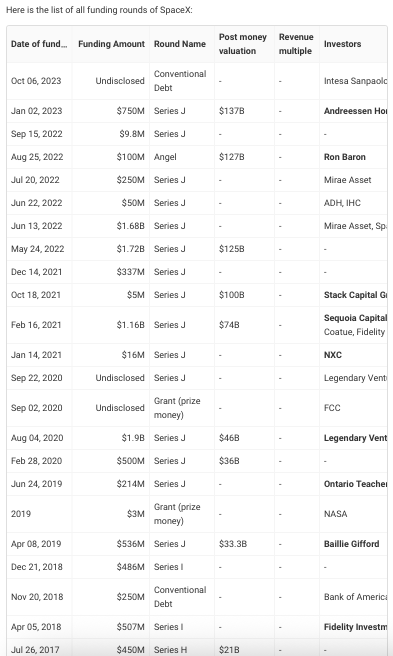 SpaceX - 2025 Funding Rounds & List of Investors - Tracxn